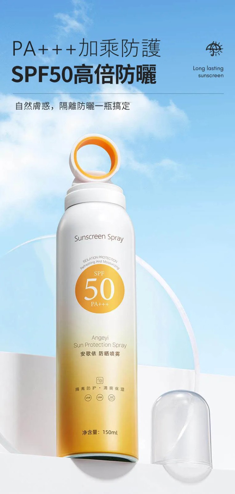 5分鐘前安歌依光圈防曬噴霧,細密噴頭設計 噴頭360°可旋轉自然膚惑,隔離防曬一瓶搞定 - 僅此一天「安歌依光圈防曬噴霧」8入72%用戶的選擇!NT$1598【限時免運】